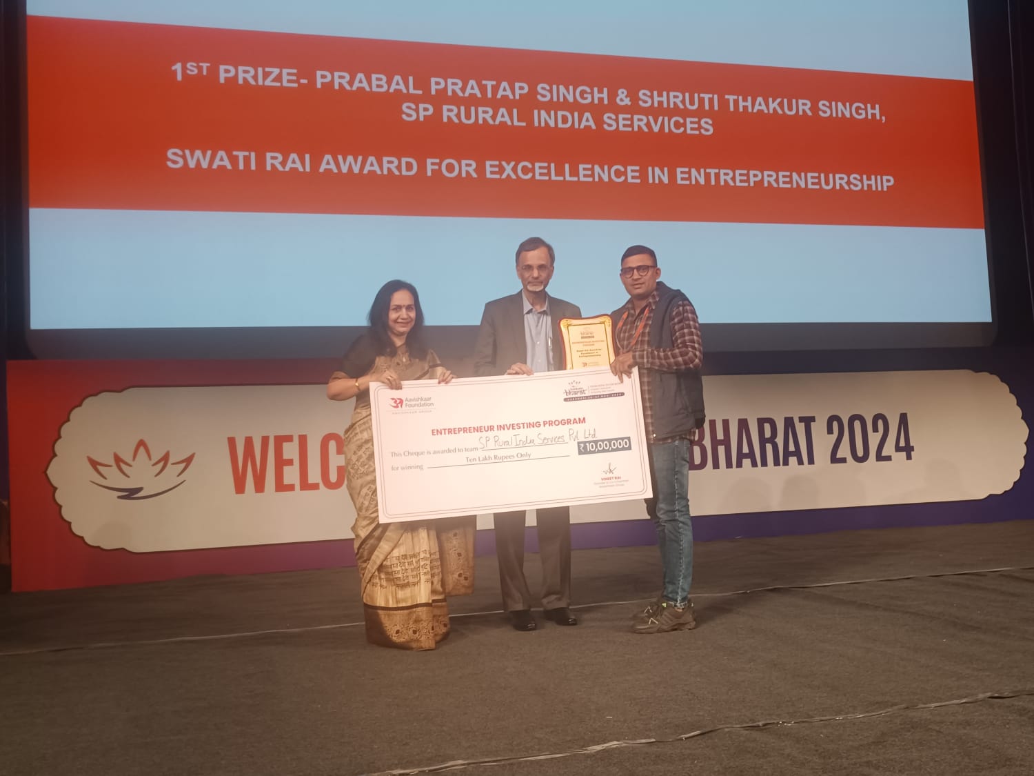 Winners of the Swati Rai Award (1st prize of 10 lakh rupees) for Excellence in Entrepreneurship at the Sankalp Bharat Summit.